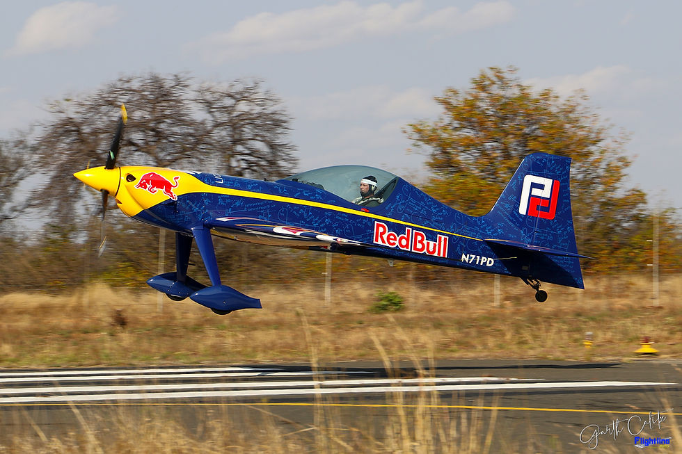 The judges quickly took their positions, fortunately as it was after midday they were placed next to the beautiful terminal building, in the morning hours they were located on an open field inside the Kruger Park boundary fence. Barrie Eeles was the first of the Unlimited chargers to take to the now almost blue sky in his Ecko Unltd Extra 330SC. Gary Glasson in his tiny Pitts Falcon followed shortly after, Red Bull sponsored Patrick Davidson in his Game Bird GB1 was next and finally Nigel Hopkins in his Ecko Unltd Extra 330SC ensuring the unlimited competition validity.